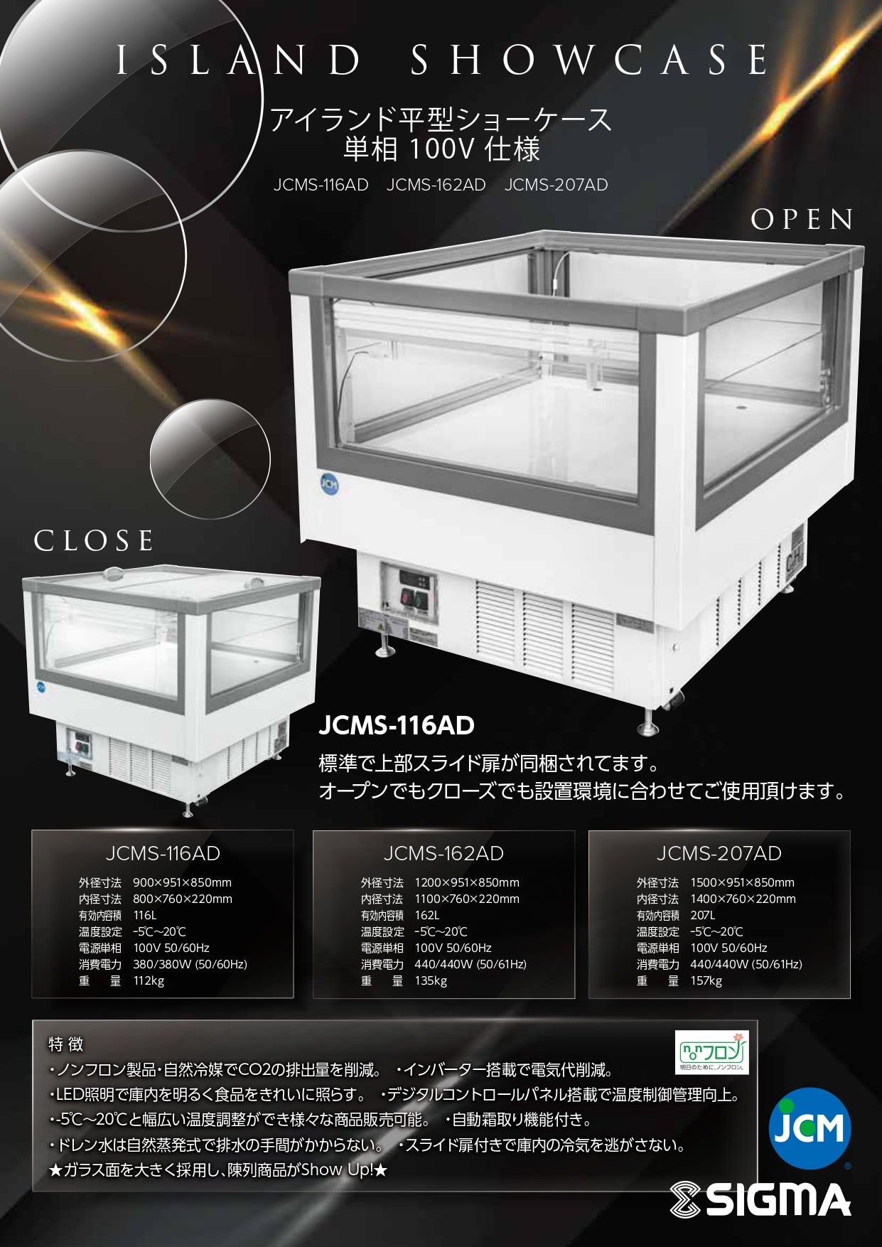 両面平型オープンショーケース冷凍冷蔵切り替え式